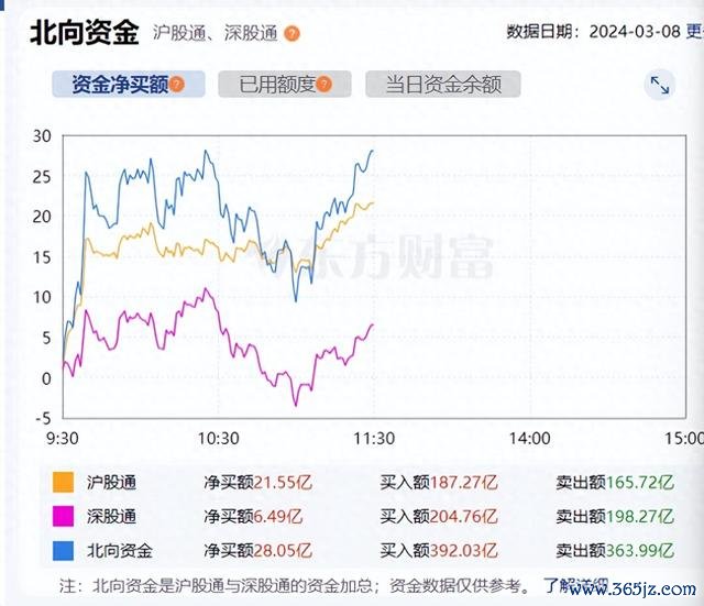北向资金上午走势0308