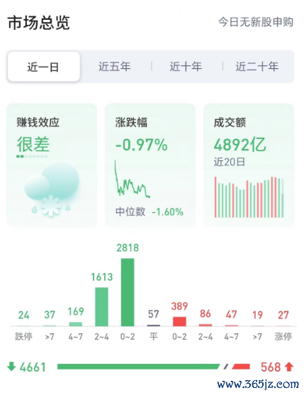 两市涨跌家数比568:4661【前一交易日2221:2816】;