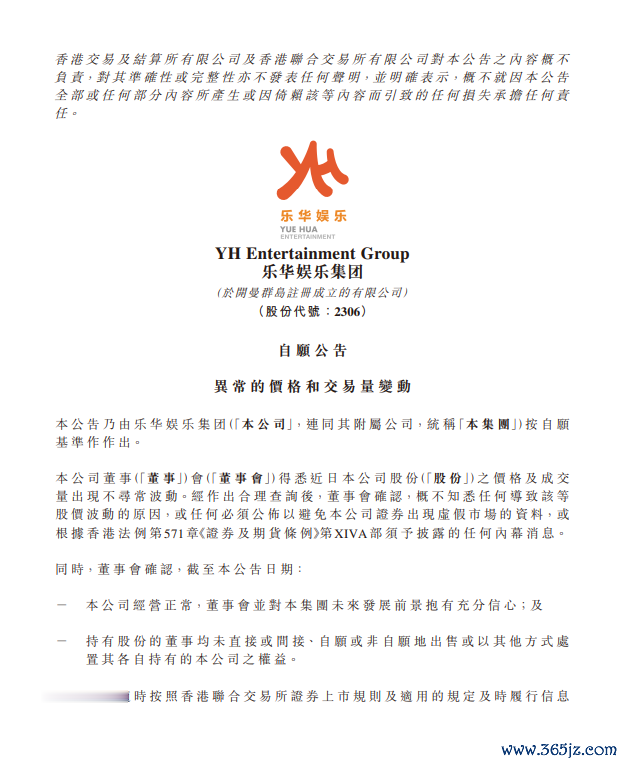 云南配资平台 乐华娱乐: 不知悉任何导致股价波动原因