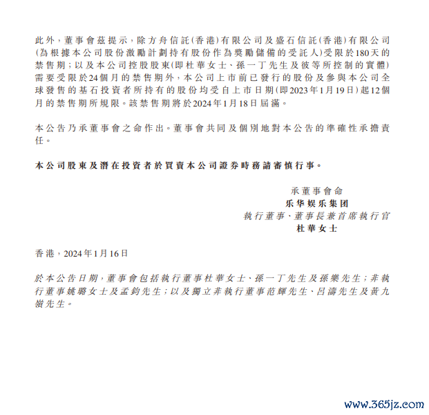 新京报讯1月16日,乐华娱乐在港交所发布公告,公告称不知悉任何导致股价波动原因。截至公告日期,公司经营正常。以下为全文: