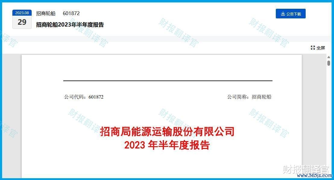大家好我是财报翻译官,今天将调研A股运输服务概念板块中,招商轮船(股票代码:601872)这家上市企业2023年半年报,并判断出该公司今年的净利润是否能出现增长。